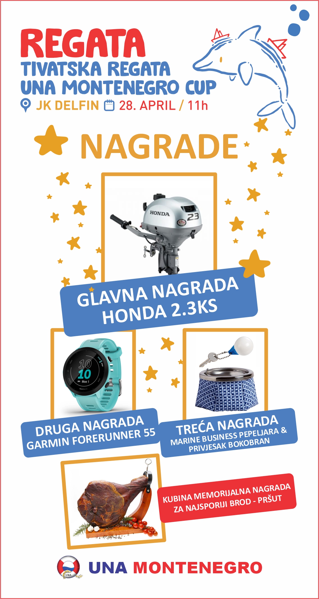 „21. Tivatska Regata Una Montenegro Cup 2026“ održaće se od 26.04.2026. u akvatorijumu Tivatskog i Kotorskog zaliva, u organizaciji JK “Delfin” Tivat.